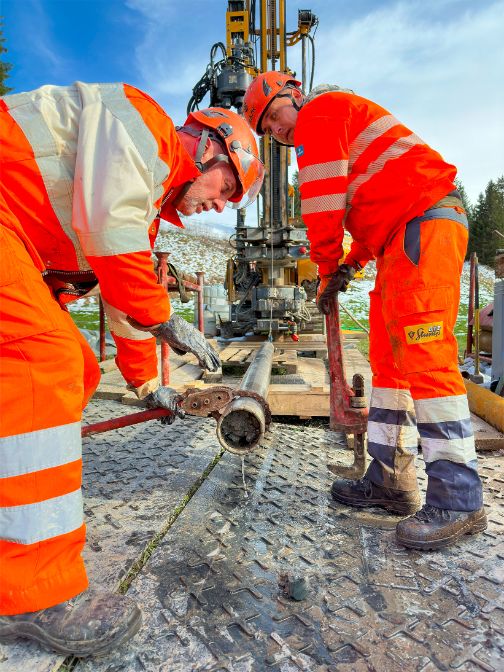 Early clarifications are needed to check the feasibility of a possible line route. For the Innertkirchen – Mettlen project, ten exploratory boreholes and geophysical investigations provided information on the position of the rock surface and the rock quality, as well as on various geological, geotechnical and hydrogeological aspects. Firstly, investigations are carried out in the borehole itself, and secondly, specialists analyse the drill core in the laboratory to determine the relevant rock properties, such as strength and composition. The main purpose of the boreholes is to explore the water permeability of the rock beneath the moorland. Pore water pressure sensors are inserted into the boreholes to monitor the mountain water level in the long term. The boreholes are intended to show whether a tunnel can be built through the Glaubenberg without affecting the moorland and its springs. A tunnel cannot be built until these investigations have been completed. Swissgrid also wants to gain insights into the necessary technical measures – i.e. what needs to be taken into account during construction. All this information forms a sound basis for further project planning.