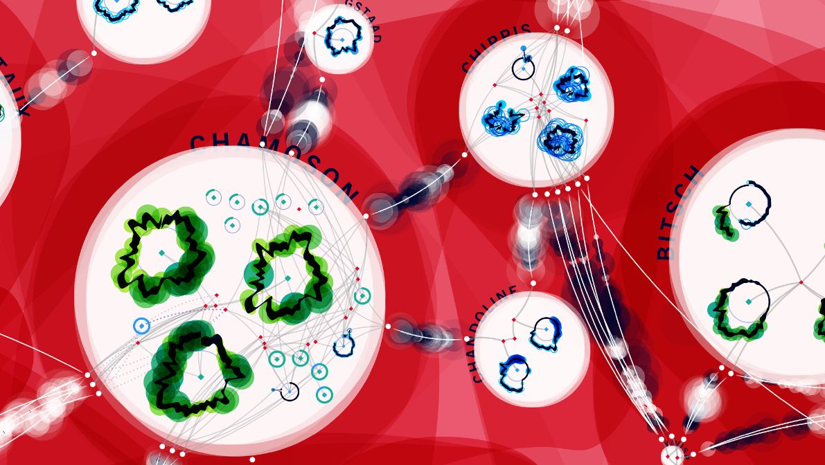 Im Fluss ist denn auch der richtige Ausdruck. Bei Betrachtung der Visualisierung aus einer gewissen Distanz fällt als erstes die rote Farbe auf. Mal stärker mal schwächer ausgeprägt, schafft das Rot die Verbindungen zwischen unterschiedlich grossen Kreisen. Der eine Kreis scheint den nächsten in Bewegung setzen zu wollen. Die Vernetzung untereinander sowie die Abhängigkeiten sind deutlich sichtbar. Nur gemeinsam schaffen sie es, den Schwung aufrechtzuerhalten. Dort wo die rote Farbe aufhört sind Umrisse zu sehen. Die Form lässt keine Zweifel offen, es handelt sich dabei um die Schweiz. Nähert man sich dem Werk sind die Namen von Ortschaften erkennbar: Avegno, Chamoson, Innertkirchen ist unter anderem zu lesen. Wer die Infrastruktur von Swissgrid kennt weiss, es sind ihre Unterwerke. Auch sie scheinen in Bewegung zu sein. Einem Herzschlag ähnlich pulsieren Ringe um sie herum. Hinter der Schönheit dieses Werkes verbergen sich Millionen von Daten, die Nadieh Bremer in akribischer Arbeit zum Leben erweckt hat. Genauer gesagt handelt es sich um Betriebsdaten des Höchstspannungsnetzes von 2019, die sogenannten Netzmodelle, welche die Operative Planung erzeugt und verwendet. Dieses Datenset umfasst in der Grössenordnung 60 Millionen Zeilen.