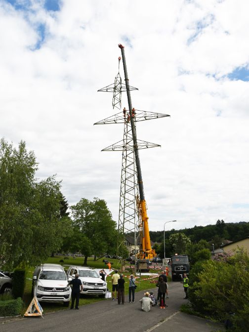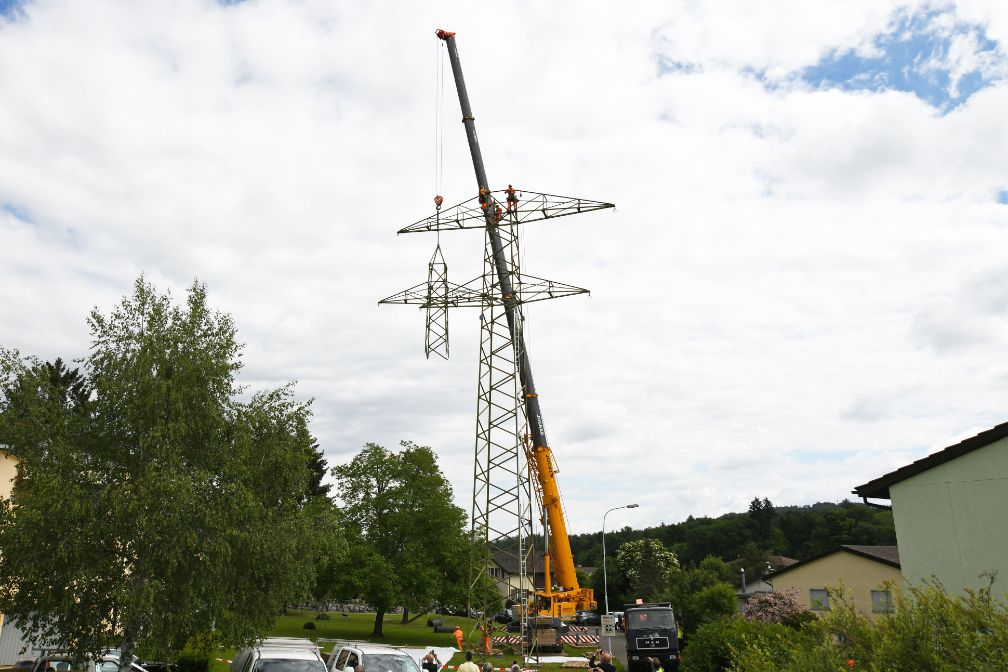 Im Mai startete zwischen Rüfenach und Habsburg der Rückbau der alten 220-Kilovolt-Freileitung. Insgesamt wurden 19 Masten demontiert, was insbesondere die Ortsbilder von Neu-Riniken und Hafen entlastet. Um zu den Masten zu gelangen, mussten teilweise Zufahrtspisten erstellt werden. Anschliessend wurden per Kran die Masten abgebaut und am Boden in kleinere Teile zerlegt. Die Betonfundamente werden zerkleinert, abtransportiert und das Gelände wieder in seinen ursprünglichen Zustand zurückversetzt. Die Rückbauarbeiten der heutigen Leitung dauern voraussichtlich bis Ende 2020.