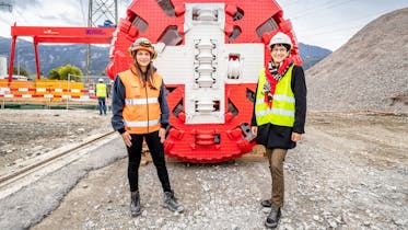 Die Mini-Tunnelbohrmaschine in den Farben des Wallis und der Schweiz erhält am Freitag, dem 2. Oktober 2020 auf der Baustelle in Le Verney in Anwesenheit von Anne-Laure Couchepin Vouilloz, Stadtpräsidentin von Martigny, traditionellerweise einen weiblichen Vornamen. Die rund 60 Tonnen schwere Maschine hört in Zukunft auf den schönen Namen Giorgia und wird kurz nach ihrer Taufe in den Schacht in Le Verney herabgelassen.