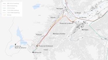 Im Rahmen dieses Projekts wurde das Pumpspeicherkraftwerk Nant de Drance an das Höchstspannungs-netz angeschlossen. Der Anschluss des Kraftwerks ist in drei Leitungsabschnitte unterteilt:
