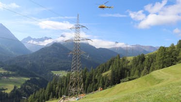 The outriggers are pre-assembled by two employees on the ground and then raised with the help of an assembly tower. Five overhead line fitters are generally at work, bolting the parts directly onto the pylon. The specialists are qualified climbers with all the necessary equipment and, of course, they are always secured, because at Swissgrid, safety is the top priority. Some pylons will also require the use of helicopters as they are located in very steep and almost inaccessible terrain. However, in general, we try to avoid the use of helicopters wherever possible.