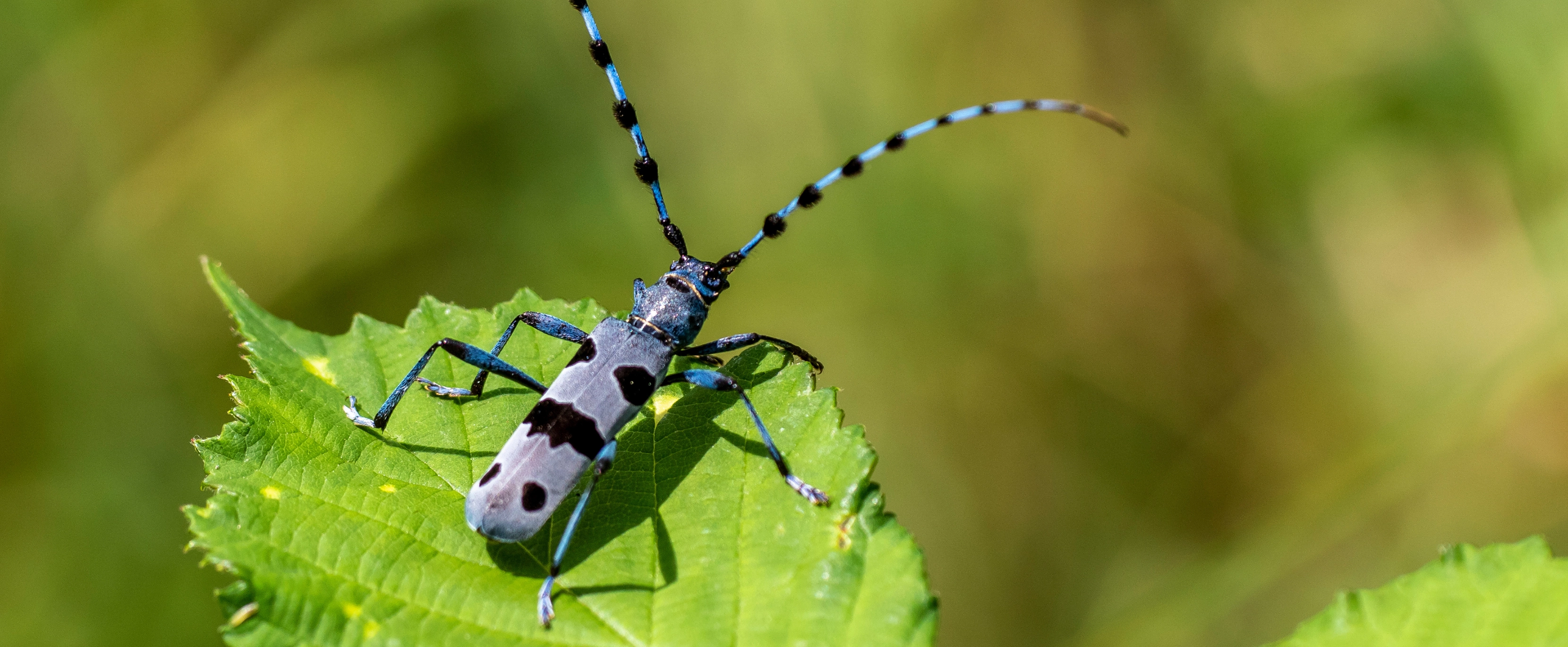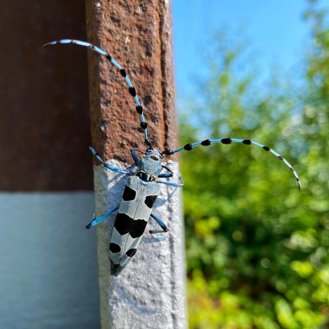 You have to look carefully to spot the Alpine longhorn beetle. Seen up close, this light blue and black beetle is a beautiful specimen that is also very rare. It spends most of its life as a larva in dead beech wood, where it lives for up to five years before it emerges from its pupa and gnaws its way out through the wood. Once outside, its life as a beetle is relatively short, as it only survives for three to four weeks. The Alpine longhorn beetle dedicates most of this time to reproduction.
