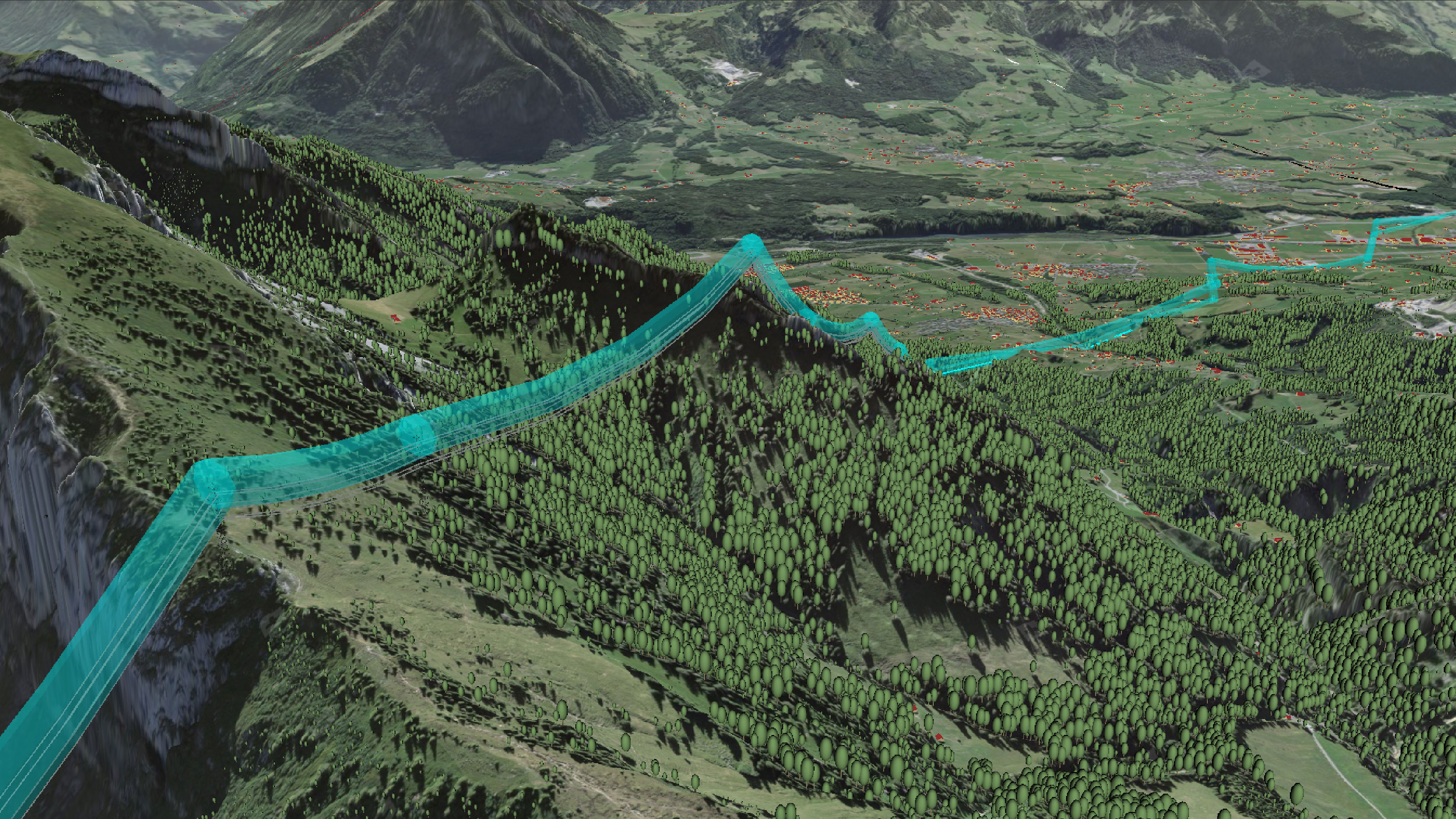 Le projet de système d'aide à la décision en 3D fournit à Swissgrid une application qui utilise des géodonnées, une analyse décisionnelle multicritères et des visualisations en 3D pour trouver des alternatives d'extension du réseau qui ont le plus haut niveau d'acceptation parmi tous les décideurs et qui sont réalisables.