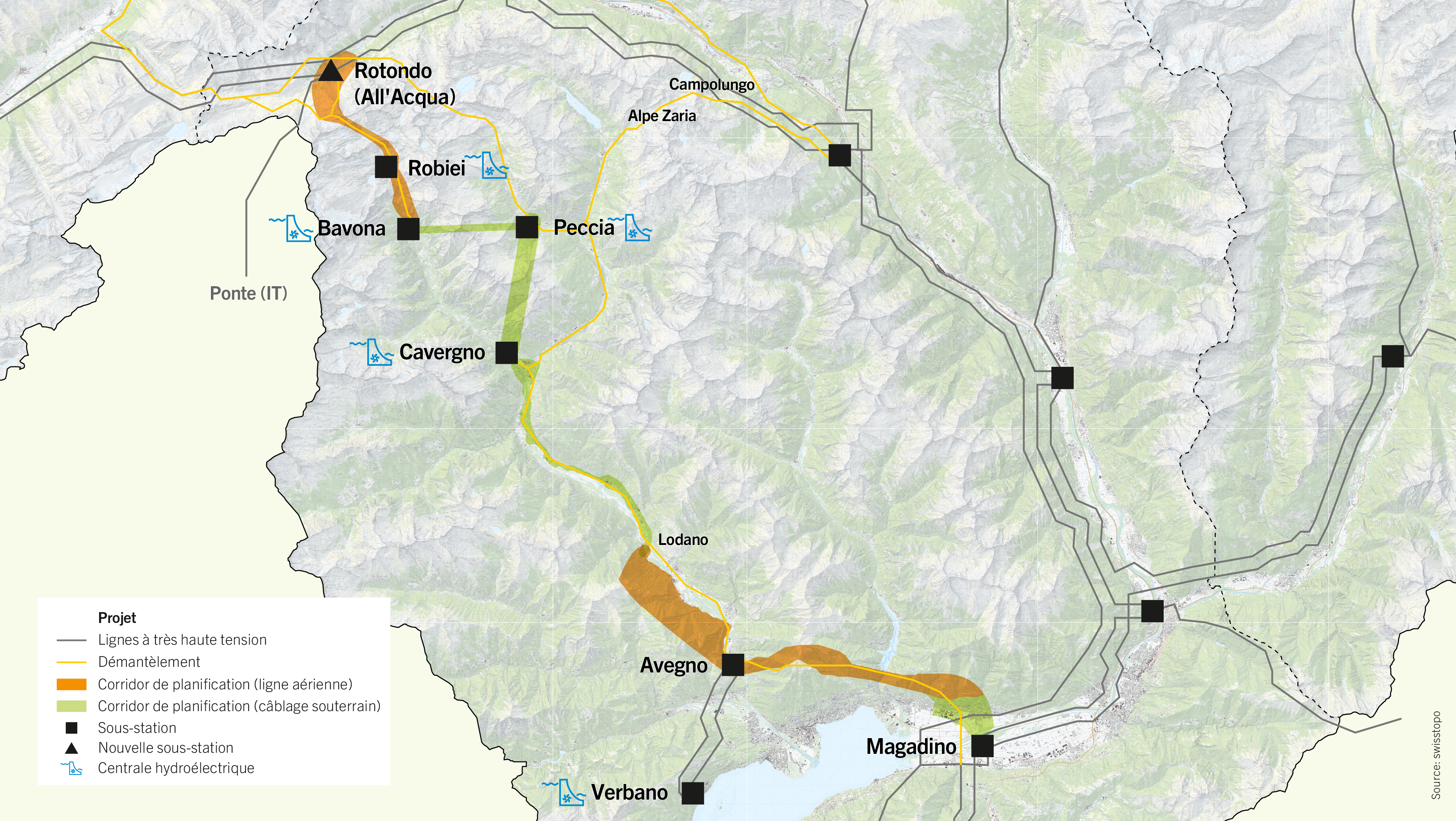 Les lignes à très haute tension de la Vallemaggia sont essentielles pour l’approvisionnement énergétique du sud des Alpes et de la Suisse. En incluant ce projet de réseau «All’Acqua - Vallemaggia - Magadino» dans son Réseau stratégique 2025, Swissgrid veut moderniser et développer la ligne existante tout en réduisant son impact sur le territoire et l’environnement. La société prévoit de remplacer l’actuelle ligne de 220 kV par un double raccordement de même tension.