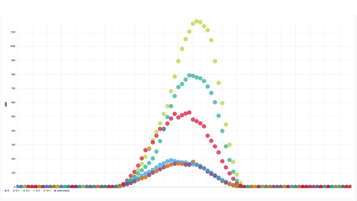 Per elaborare previsioni ad alta risoluzione a partire dall’alimentazione di energia dal fotovoltaico decentralizzata e volatile, Swissgrid si serve di un’integrazione completa e automatizzata dei dati. A tal fine, il team responsabile dell’innovazione ha sviluppato un modello di previsione che fornisce una solida base di dati per le previsioni regionali sulla produzione fotovoltaica nelle aree di forecast, nowcast e backcast.